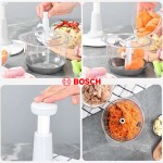 Bosch — это не просто блендер, это мясорубка, овощерезка, соковыжималка и измельчитель — все в одном устройстве. Легко измельчайте мясо, рыбу, фрукты, овощи, вареные крупы, орехи, зелень, лед и многое другое в большой, просторной чаше. Контейнер изготовлен из высококачественного, прочного стекла и вместителен. В комплект устройства также входит специальная насадка для приготовления безе, позволяющая приготовить изысканную выпечку и разнообразные десерты. Он отлично подходит для мам, поскольку идеально подходит для приготовления детского питания.